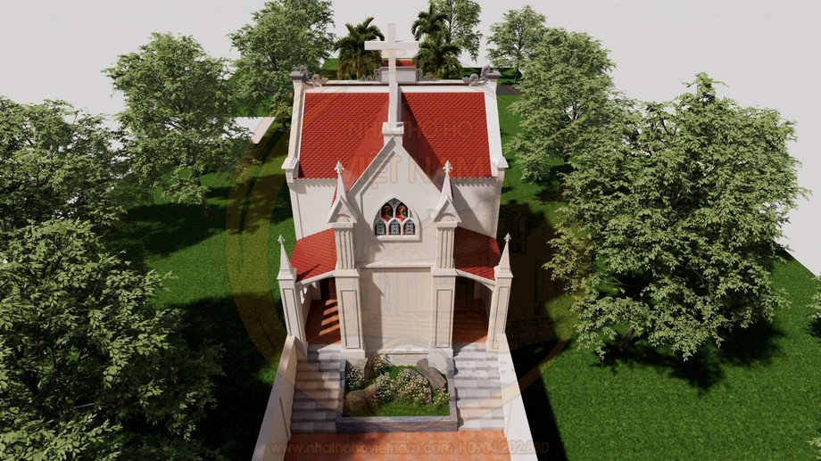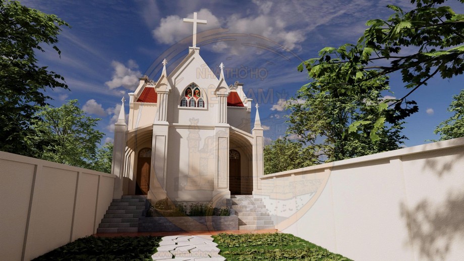 Công trình được thiết kế với mục tiêu tạo nên không gian linh thiêng, trang trọng đồng thời đảm bảo độ bền vững lâu dài.